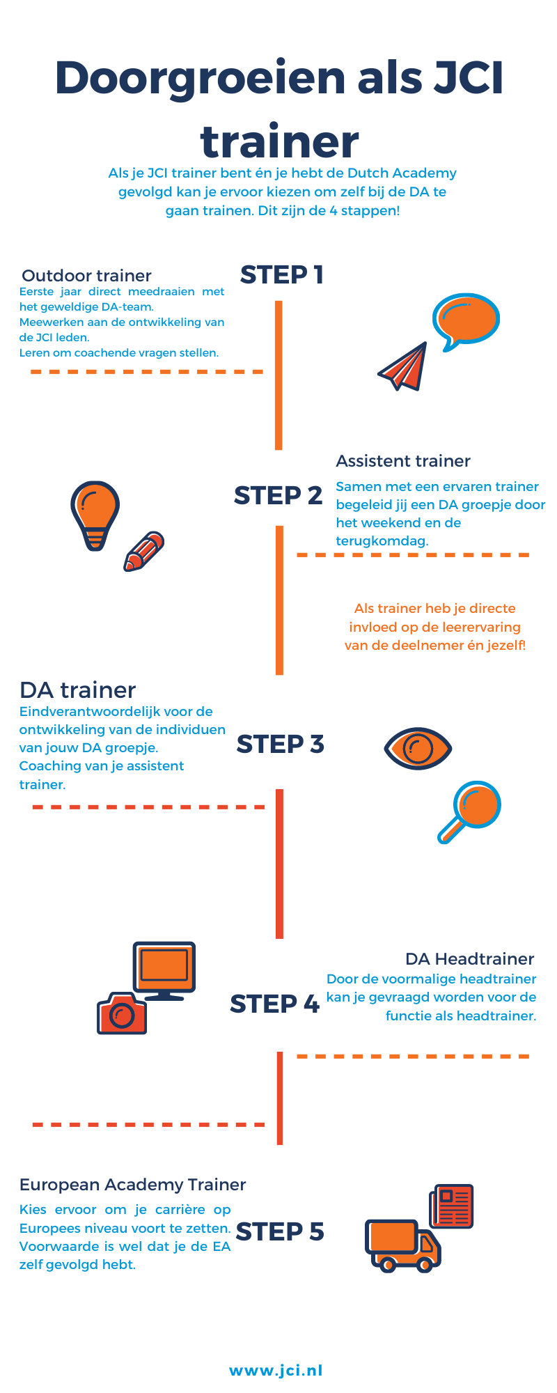 The Dutch Academy is a JCI experience in which you further develop your leadership qualities, really get to know yourself and others, get acquainted with coaching according to Insights Discovery and, above all, go home with a lot of ideas, inspiration, energy and new contacts. So the next time you hear the abbreviation DA as a JCI member, you will know all about it, because you have already experienced this yourself! However?